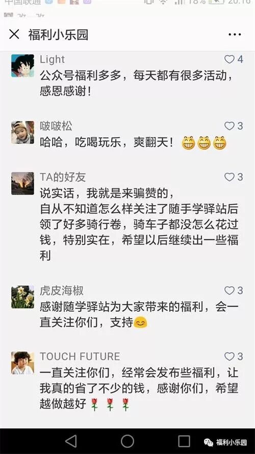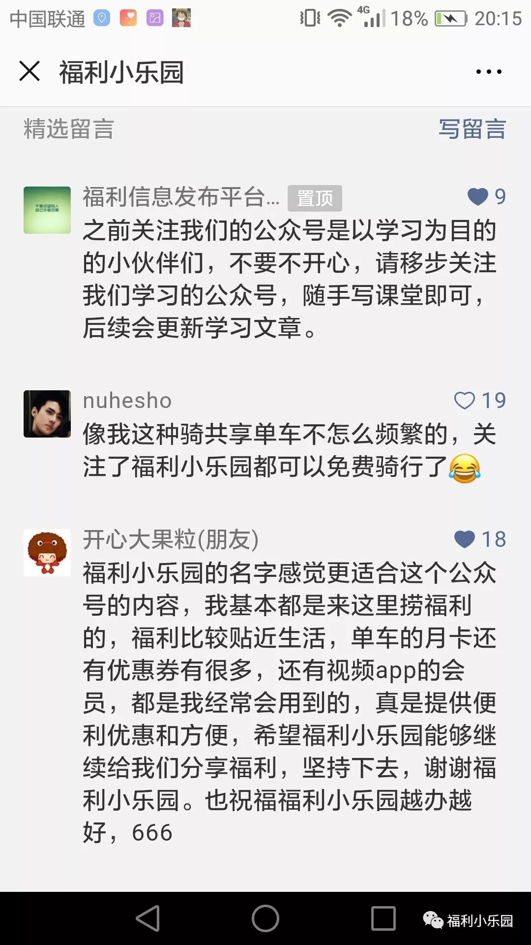 PS:这次由于点赞的数太少,且重复的多,那么小编为了公平期间,只能按照微信的留言排名顺序来截图,来公布前20名的结果。当然了“福利信息发布平台”是小编自己不会参与获奖的。