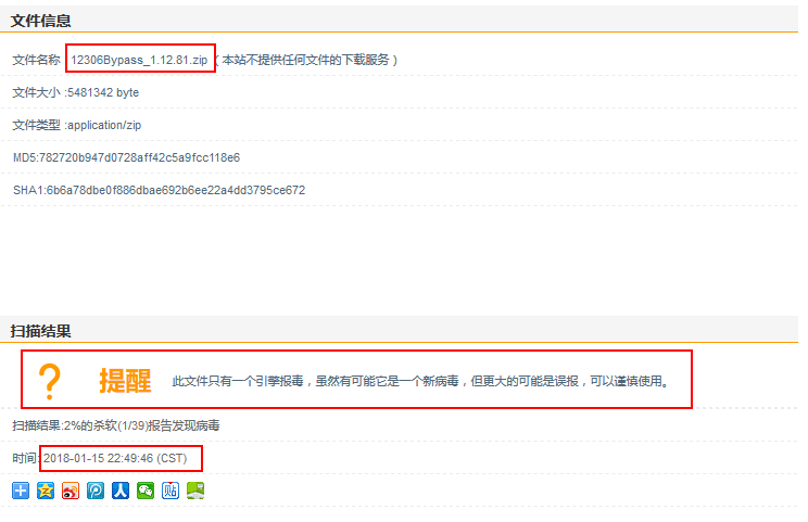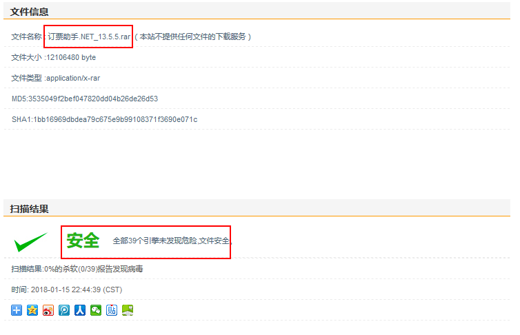 小编从两个软件官网中下载软件然后放在查毒网站进行病毒查询结果如下: