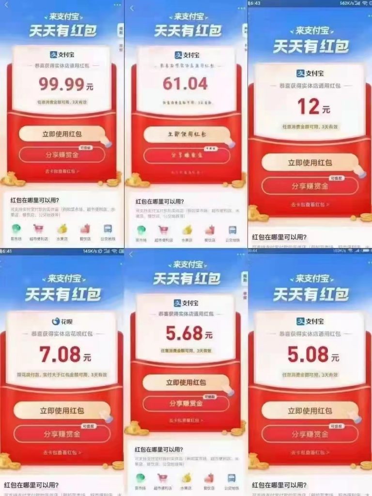 冲冲冲!!是必中的~领到的紅包可以买包子买水都可以的,街边小店 菜市场付款,超市抵扣都可以用,没领的别忘记去领,使用了,每天可以领一次~